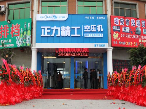 2012年3月17日,正力精工温州瑞安专卖店隆重开业,为当地用户提供正力精工专业、快捷、高效的产品体验与服务体验。 正力精工温州瑞安专卖店主营螺杆式及涡旋式空压机,分别包括大排量节能螺杆空压机、S系列螺杆空压机、涡旋小排量节能空压机、无油水润滑空压机等全系列节能高效空压机,以及正力精工正品配件,完全满足不同用户个性化需求。此外旗舰店还提供专业的方案设计及星级售后服务,全面提升用户体验。